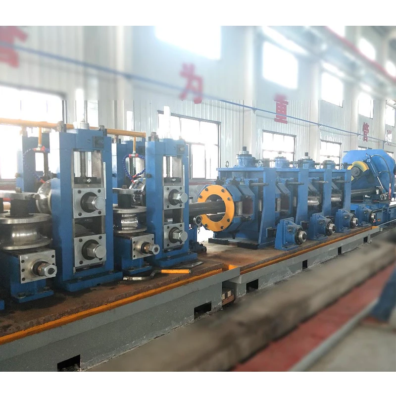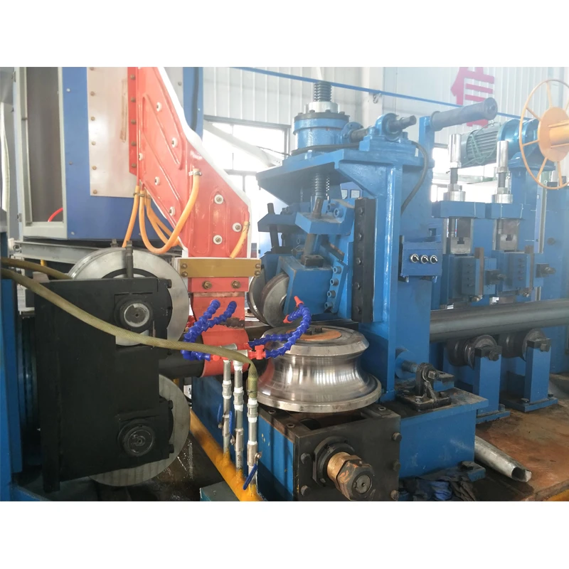 Coil loading car→ single mandrel uncoiler→Pinch and leveling machine →Shear and end welding machine( strip joiner) →floor type accumulator→forming machine→HF welding →Water Cooling→Sizing machine→ Flying Saw → tube end chamfering machine → hydrostatic testing machine →Run out table→ automatic stacking machine → Warehouse Storage