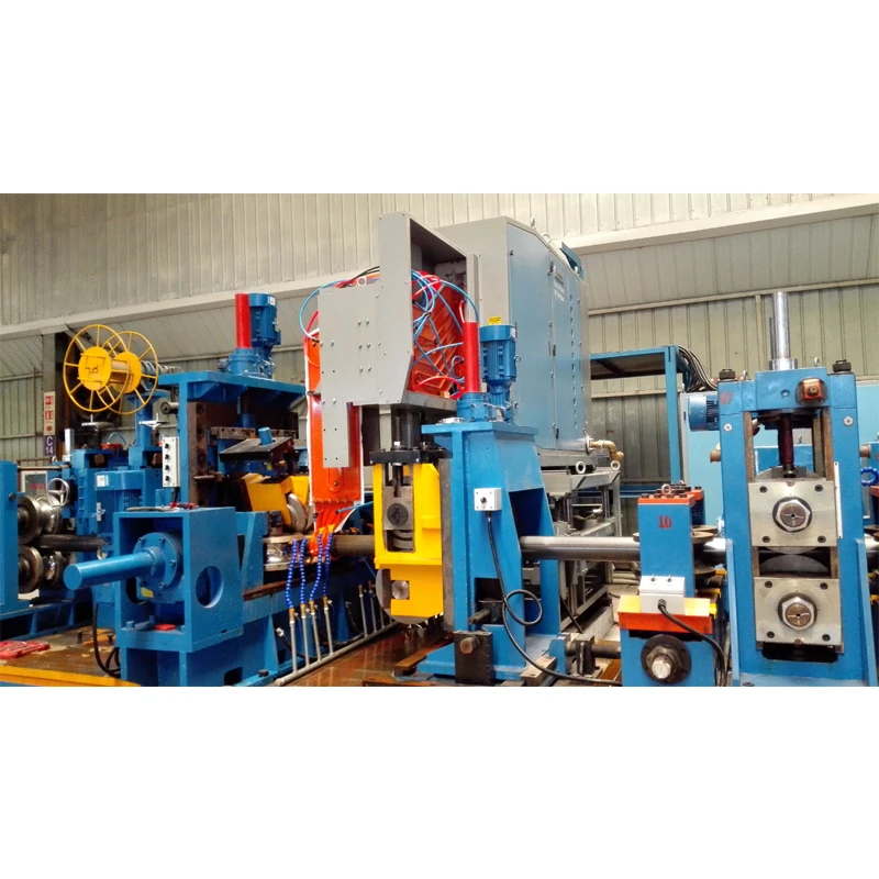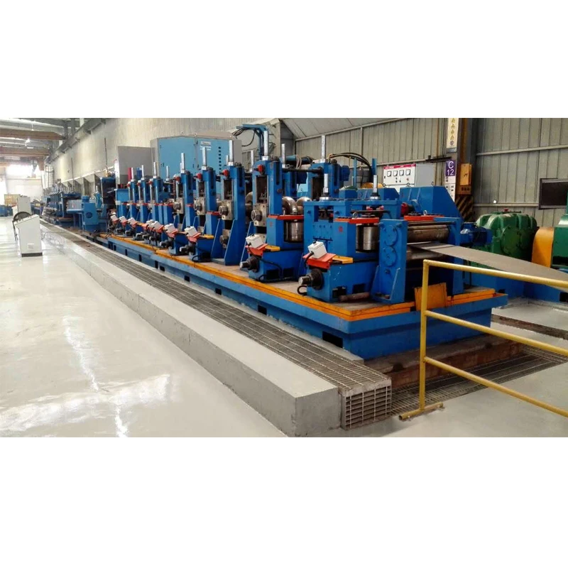 Coil loading car→ single mandrel uncoiler→Pinch and leveling machine →Shear and end welding machine( strip joiner) →floor type accumulator→forming machine→HF welding →Water Cooling→Sizing machine→ Flying Saw → tube end chamfering machine → hydrostatic testing machine →Run out table→ automatic stacking machine → Warehouse Storage