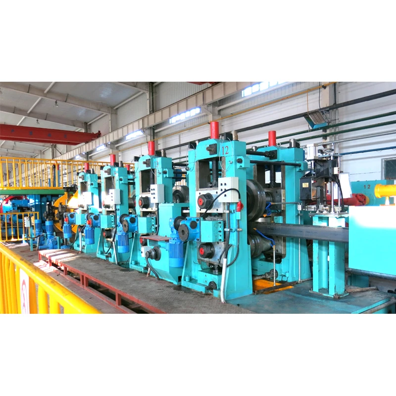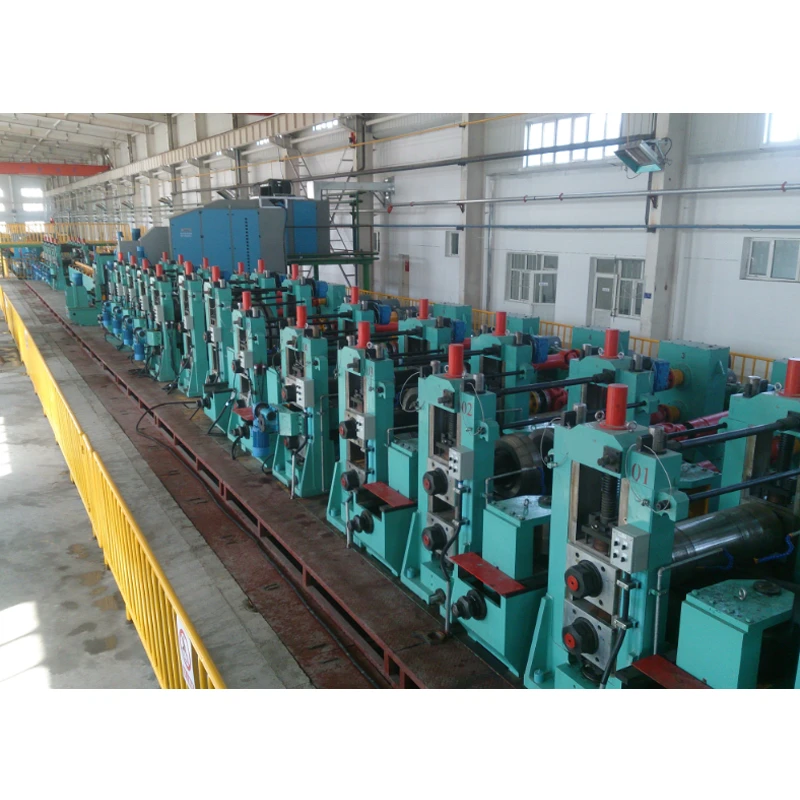 Coil loading car→ single mandrel uncoiler→Pinch and leveling machine →Shear and end welding machine( strip joiner) →floor type accumulator→forming machine→HF welding →Water Cooling→Sizing machine→ Milling type cutting Saw → tube end chamfering machine → hydrostatic testing machine →Run out table→ automatic stacking machine → Warehouse Storage